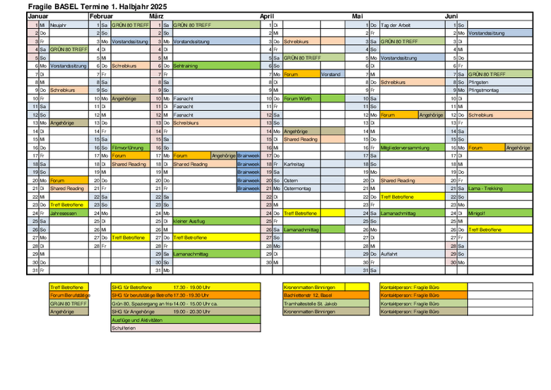 Hier erhalten Sie einen Überblick über die Veranstaltungen und Termine von FRAGILE Basel in der 2. Jahreshälfte 2024